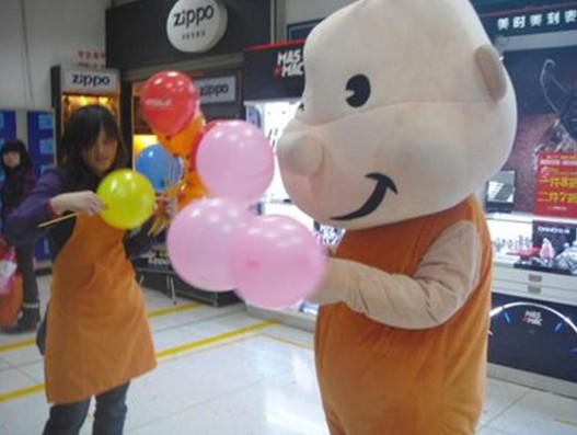 樓梯口大丁丁在發(fā)氣球,邀請(qǐng)小朋友參加親子活動(dòng)。