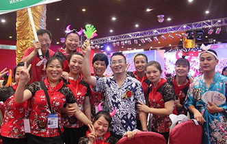 訂貨會現(xiàn)場氛圍布置打破以往的中規(guī)中矩的形式,本次在視覺上以“快樂可以很簡單”為主題,導(dǎo)入快樂島國概念,精心制作的快樂門、歡迎牌以及靜態(tài)展的椰樹、螃蟹、貝殼等惟妙惟肖的海洋島國元素贏得客商的青睞與贊賞,紛紛合影留念,同時,也讓客商感受濃濃的海洋島國氣氛,給客商一個涼爽的島國訂貨環(huán)境。在接待上,導(dǎo)入快樂一家親包裝概念,全體參與訂貨會人員經(jīng)過精心的專業(yè)培訓(xùn),給客商提供無微不至的快樂服務(wù),讓客商賓至如歸。