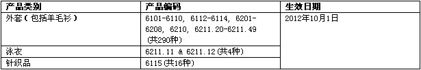 表1:修訂的所要求檢驗紡織品的生效日期