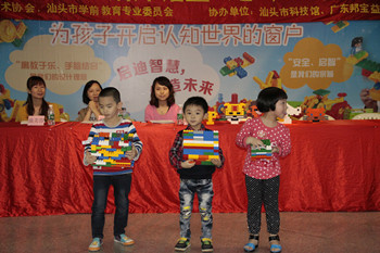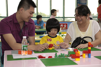“這是一輛飛車,它能夠飛上太空”、“我要做一輛大火車,載著爸爸媽媽和小朋友一起去北京”、“我造的新娘車是有翅膀的,塞車的時候可以‘嗖’一下飛上天”……上周六,一場益智、溫馨、健康的“迎六一”親子活動在汕頭科技館三樓的“邦寶積木玩學益智體驗館”舉行。小朋友們在爸爸媽媽的幫助下,充分發揮想象力和創造力,他們的奇思妙想引來現場陣陣歡笑聲。