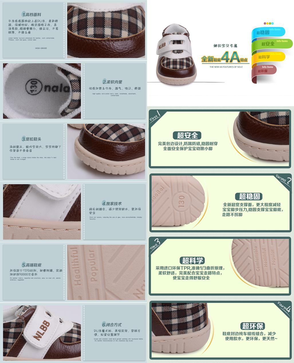 “娜拉寶貝”在此研究基礎上研發了相對應的適合寶寶學步的學步鞋,我們除了在鞋頭的設計上做寬做大,留出足夠的腳趾運動空間外,鞋底還采用了優質、環保、柔軟而且厚度適中的材料,讓寶寶在學習走路的時候能夠通過腳底感受地面,從而更好地提供給寶寶合適的平衡重心的信息。同時為了方便媽媽們幫寶寶穿脫鞋子,我們在鞋背上采用方便的魔術貼的設計,既方便了寶寶穿脫鞋子,同時又給鞋子提供了良好的松緊感,使鞋子在足夠寬松的情況下依然不易脫落。