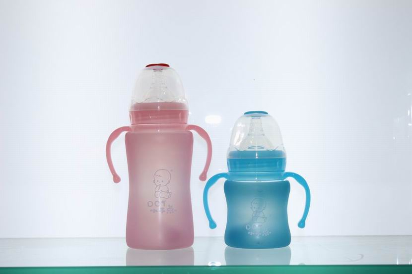 很多媽媽可能都會有這樣的擔憂,怕泡好的奶水溫度太高燙傷了寶寶。小不點研發團隊從人性化設計理念出發,新開發的感溫硅膠奶瓶套成功實現感溫變色功能。只要奶瓶內的奶水溫度超過了43攝氏度時,奶瓶套就會自動改變顏色,由原來的紅/藍色慢慢變成透明無色,提醒媽媽這個時候奶水溫度高了。同時,感溫硅膠奶瓶套還可以起到隔熱、抗沖擊等效果。
