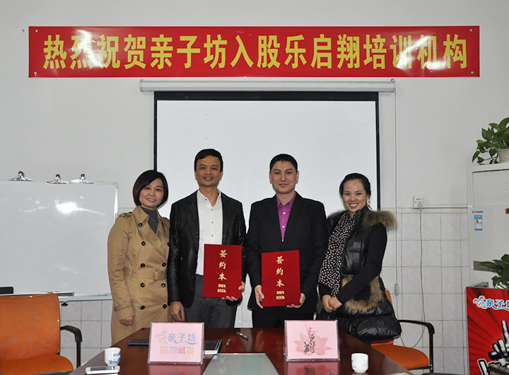樂啟翔藝術培訓中心是佛山地區最具特色的培訓機構之一,擁有優質的師資隊伍;老師團隊大部分來自廣州美院等高等學府,經驗豐富;培訓場內設備設施完善,環境舒適優雅,擁有數百名在冊學員。簽約儀式上親子坊公司黎總肯定了樂啟翔近年來的發展成績并感謝樂啟翔讓親子坊進入了藝術舞蹈培訓領域,進一步擴展了業務功能;服務群體由原來的0~6歲擴展到0~18歲(部分還有成人課程),這對親子坊全方位的兒童服務產業將起到積極的推動作用!黎總表示:今后將通過親子坊和樂啟翔雙方努力,不斷完善、優化辦學設施,提升辦學質量,提升知名度和美譽度,發揮各自優勢,做出特色,做好品牌,用3~5年左右時間,將樂啟翔辦成佛山地區乃至廣東省內一所集舞蹈、書畫、美術、才藝及其它健康益智類訓練的綜合型培訓機構。期間樂啟翔趙總及曾老師也充分感謝親子坊在樂啟翔高速發展的階段強勢入股,給予樂啟翔足夠的資金及資源平臺支持。趙總表示未來將加倍努力,與團隊成員一起全力提升樂啟翔各項業務發展 。