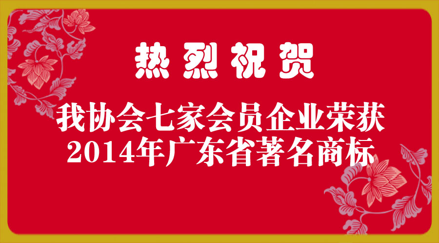 熱烈祝賀我協會七家會員企業榮獲2014年廣東省著名商標稱號,其中新獲得廣東省著名商標企業有: