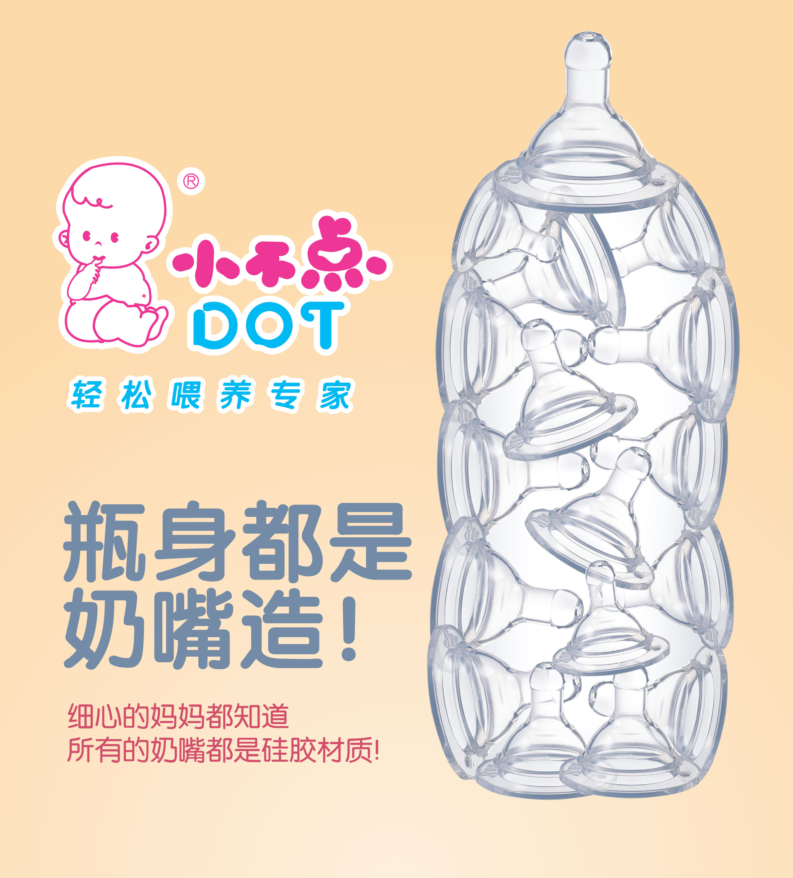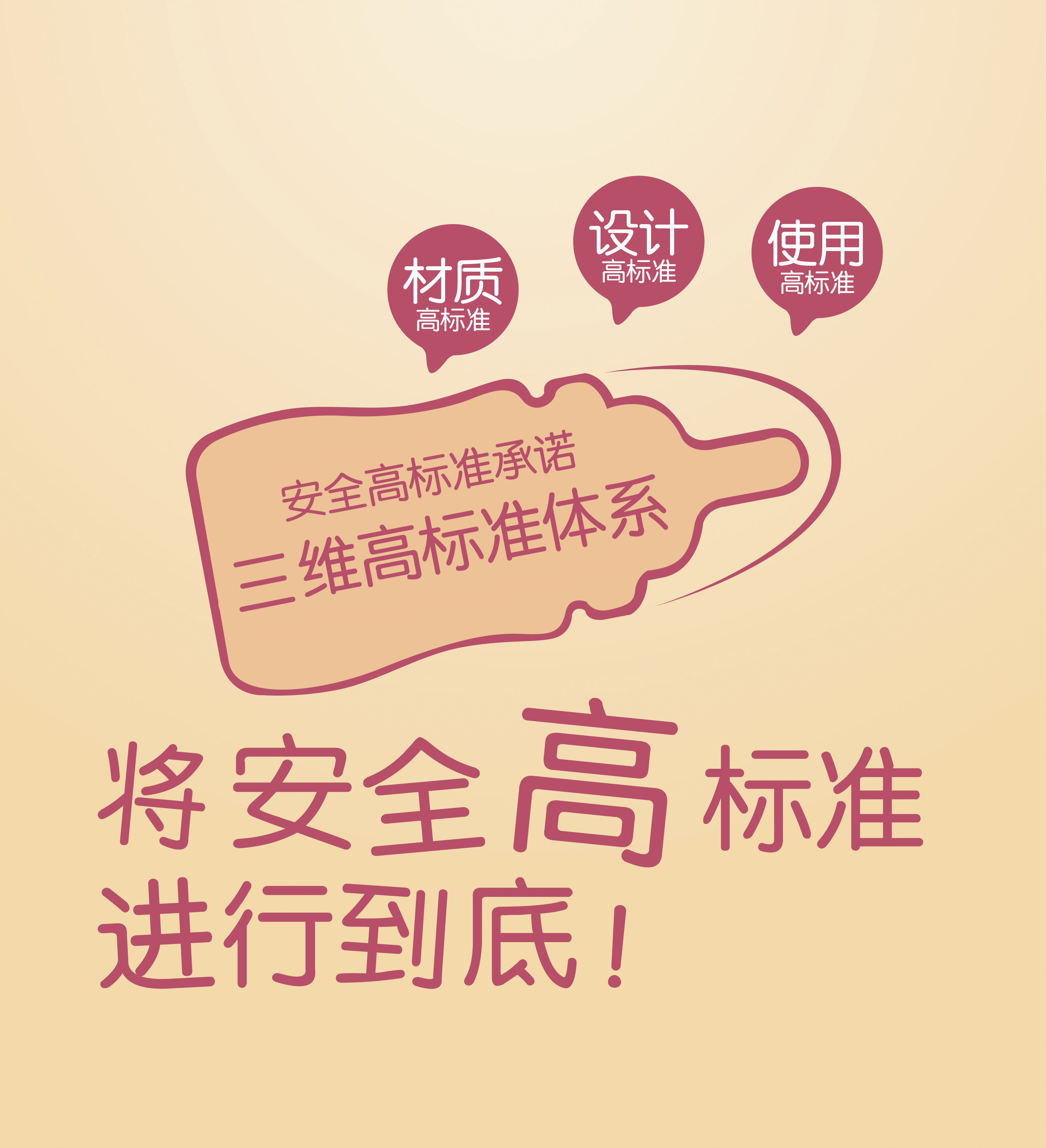 所謂“奶瓶三維高標準體系”,首先是指“材質選用高標準”,“小不點”硅膠奶瓶均采用食品級硅膠制成,不含雙酚A、塑化劑等有害物質。其次是指“功能設計高標準”,在產品的功能設計方面,“小不點”硅膠奶瓶采用由品牌創始人、國內知名硅膠材料和制品專家吳世維先生發明的、榮獲國家專利的“超級芯”——單向回氣壓盤技術,回氣效果更好,能有效防止寶寶喝奶時嗆奶。特制的封閉結構奶嘴,不會吸入空氣;獨有的隔離墻專利設計,輕松實現奶氣分離;側面開放式導氣槽,使寶寶吸奶時不再受堵塞困擾;獨立的空氣循環系統,業內首創;靈動的硅膠吸管,充分接觸奶液,讓寶寶不再受“費力吸”之苦,輕松實現“輕松吸”!再次則是指“使用安全高標準”,德國進口的硅膠原材料,保證了“小不點”硅膠奶瓶在獨具上述優勢的同時,還具備可耐高低溫、抗老化、防撞擊、不易碎等特點,而且柔軟度貼近媽媽乳房,寶寶更容易接受。
