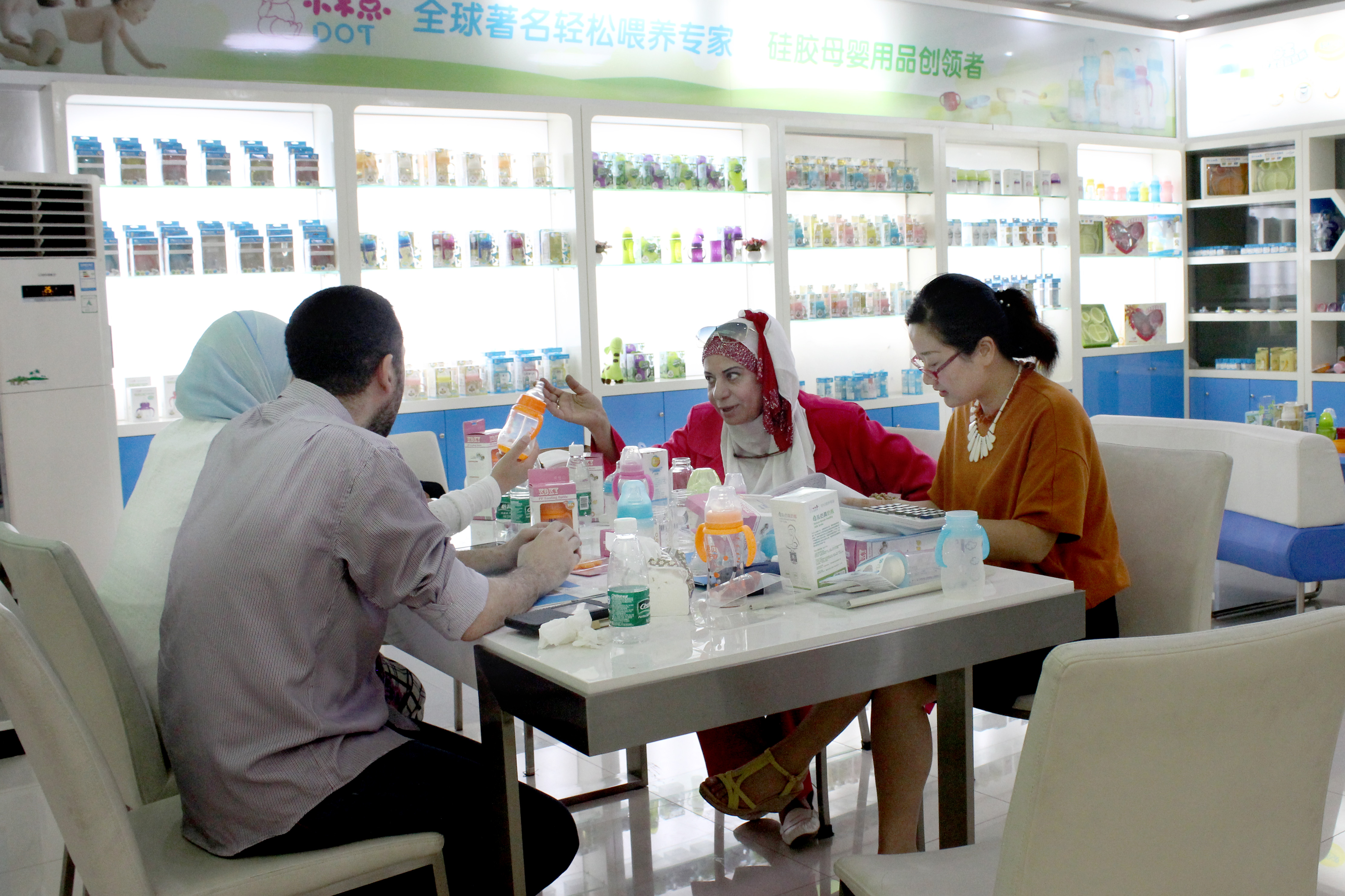在小不點樣品展廳,客人們詳細向外貿(mào)部廖經(jīng)理就小不點各個系列產(chǎn)品及其配件逐一進行了解,對小不點創(chuàng)導的“輕松吸”喂哺理念非常認同。隨后,客人們與廖經(jīng)理就合作事宜進行了輕松愉快的洽談。