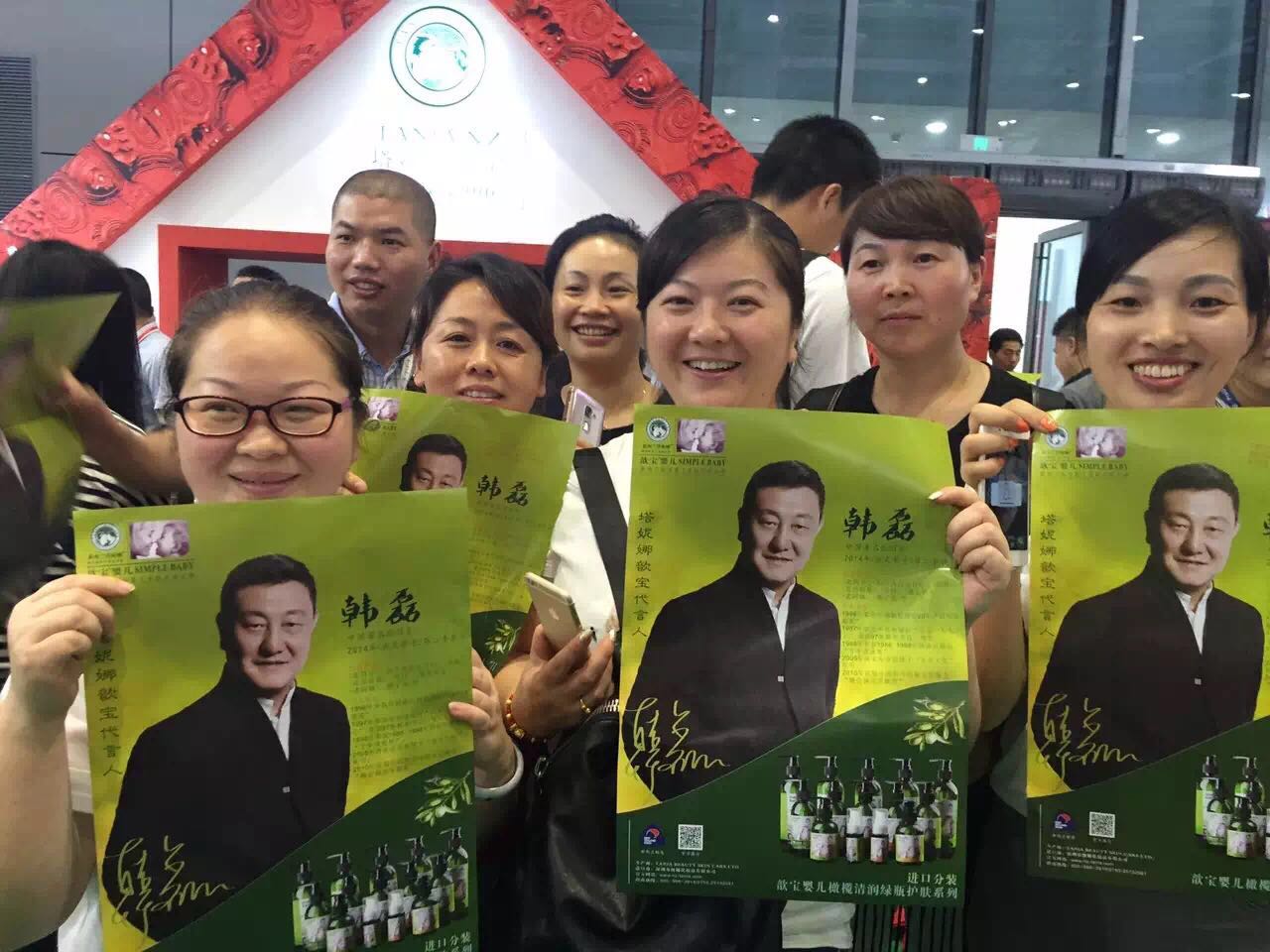展會剛開始,著名歌唱家韓磊作為塔妮娜歆寶的品牌代言人出現在展位上,與參展的客商、歆寶的粉絲互動,人潮涌動,熱鬧非凡。