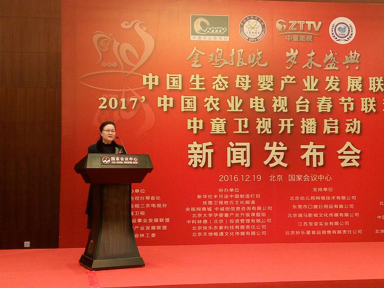 由中國新城鎮建設指導,中國生態母嬰產業發展聯盟、中國新城鎮建設事業發展聯盟、中國農業電視臺籌備處、中國互聯網電視三農電視臺紀實頻道、中童衛視、2017農視春晚組委會聯合主辦的“中國生態母嬰產業發展聯盟啟動、2017首屆農視春晚、中童衛視開播啟動新聞發布會”2016年12月19日下午在北京國家會議中心隆重舉行。