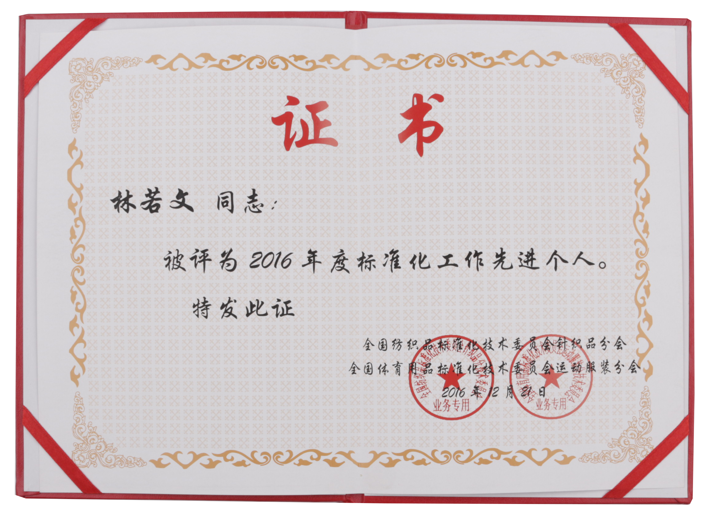 由中全國(guó)紡織品標(biāo)準(zhǔn)化技術(shù)委員會(huì)針織品分會(huì),全國(guó)體育用品標(biāo)準(zhǔn)化技術(shù)委員會(huì)運(yùn)動(dòng)服裝分會(huì)評(píng)選活動(dòng),拉比榮獲“2016年度標(biāo)準(zhǔn)化工作先進(jìn)單位”、“戰(zhàn)略合作單位”,金發(fā)拉比總經(jīng)理林若文女士榮獲“2016年度標(biāo)準(zhǔn)化工作先進(jìn)個(gè)人”稱號(hào)!