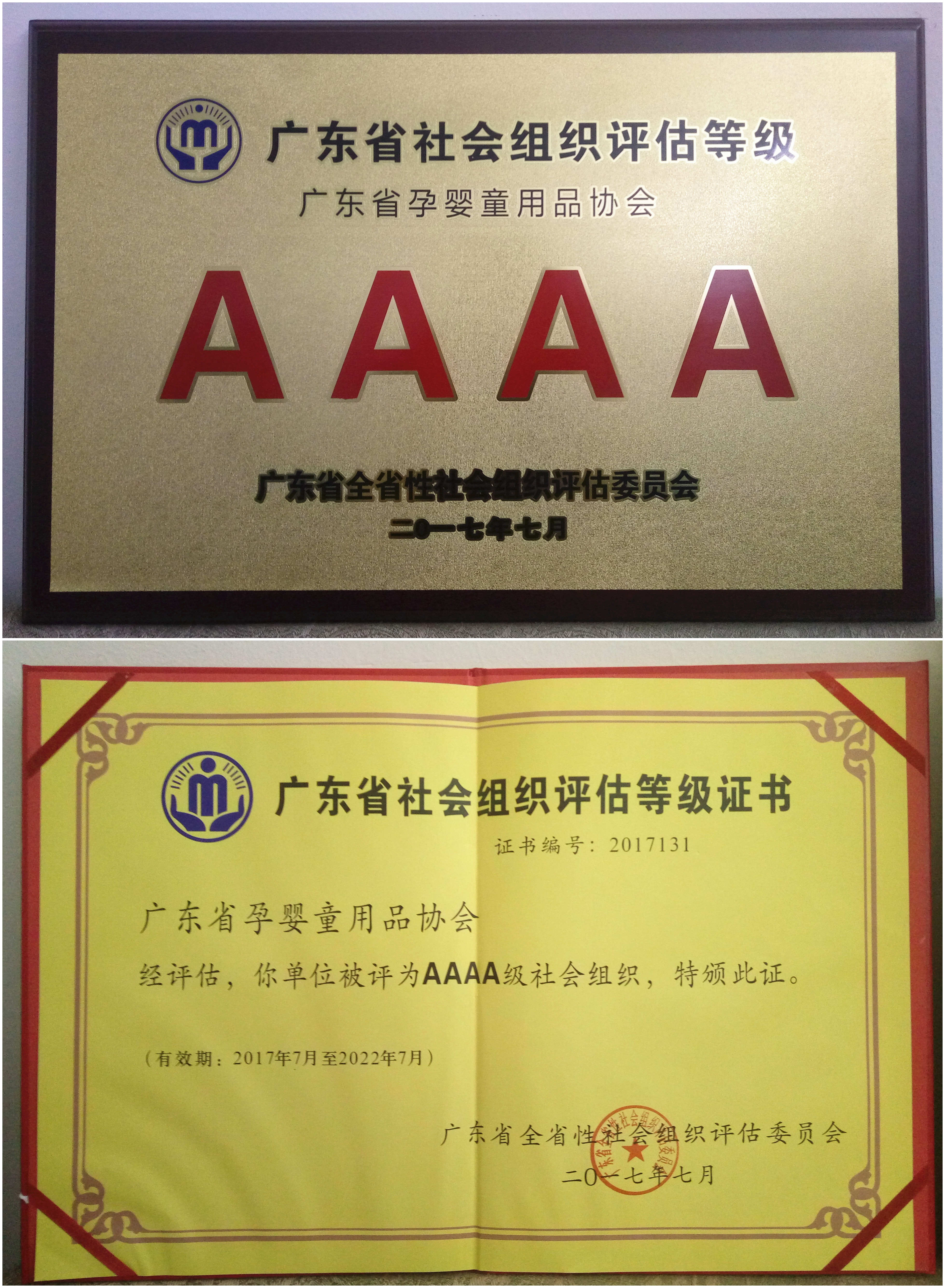 為了貫徹落實國家加強社會組織管理的一系列指示精神,規范社會組織工作,提升社會組織自身建設能力,推動社會組織健康有序發展,根據《社會組織評估管理辦法》和全省性社會組織評估等相關規定,2016年廣東省孕嬰童用品協會向廣東省社會組織管理局申報社會組織等級評估工作。經過自評、評估機構派出評審組初評、評估委員會審核等程序。2017年6月,廣東省社會組織管理局公布了2016年160家社會組織評估等級的結果,廣東省孕嬰童用品協會獲得4A級社會組織稱號,并于2017年7月20日進行授牌儀式。獲得4A級社會組織是對我協會工作的肯定,也離不開嬰童行業同仁及廣大會員單位的支持,離不開社會各行業、媒體單位的關注和幫助。