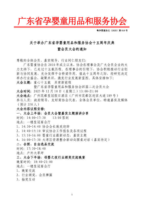 ·關于舉辦廣東省孕嬰童用品和服務協會十五周年慶典暨會員大會的通知