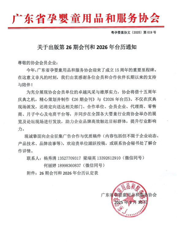 ·關于舉辦廣東省孕嬰童用品和服務協會十五周年慶典暨會員大會的通知